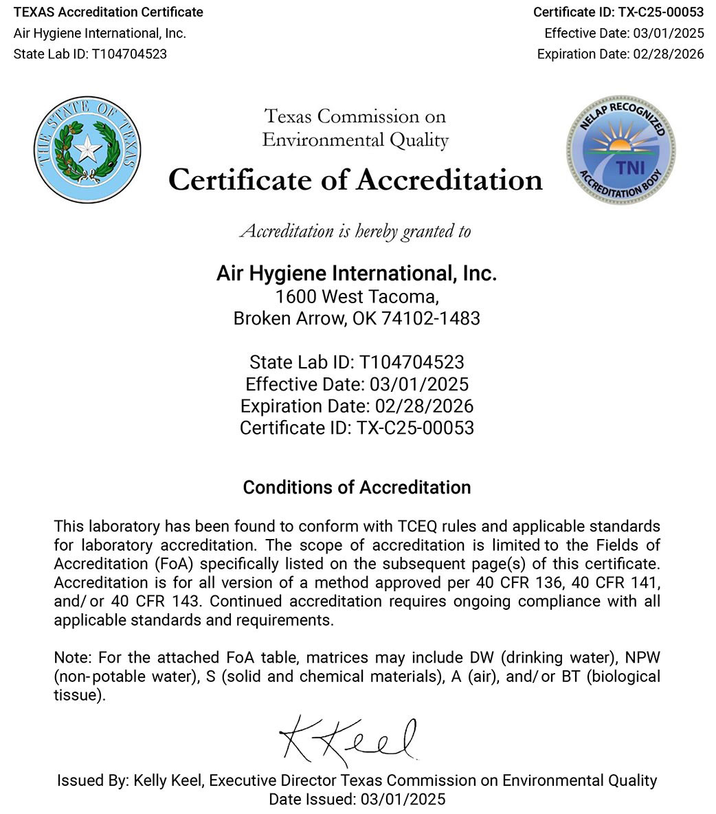 Air Hygiene is registered with the Texas Commission on Environmental Quality.